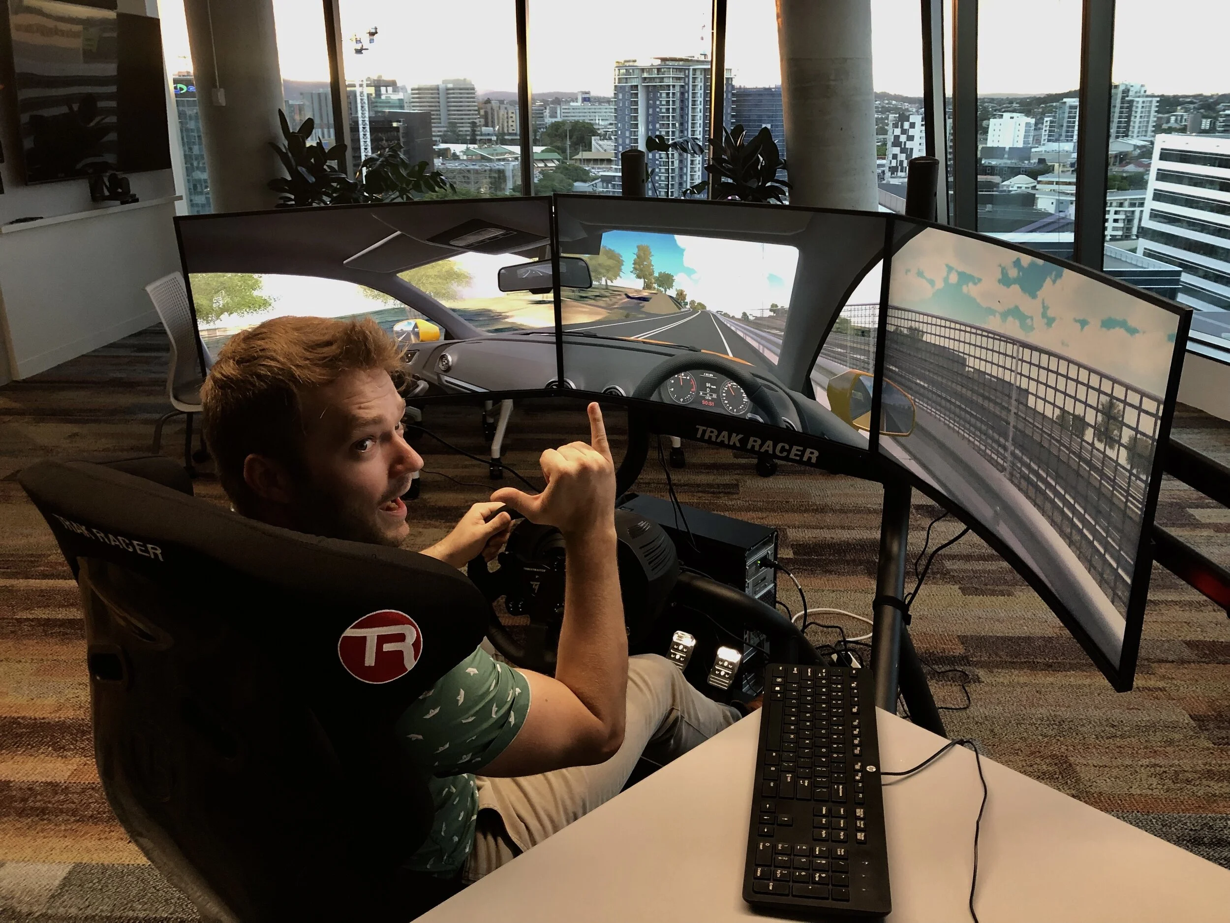 Me testing our driving simulator. We incorporated engineering datasets like CAD roadway from our engineering design team then we geo-located it into current terrain data to accurately reconstruct the current highway with the proposed upgrade for comparative testing. We worked with a human factors psychologist to evaluate the data we collected from participation. We also had the option to run this in VR mode however found this multi-screen setup more comfortable to certain age groups.